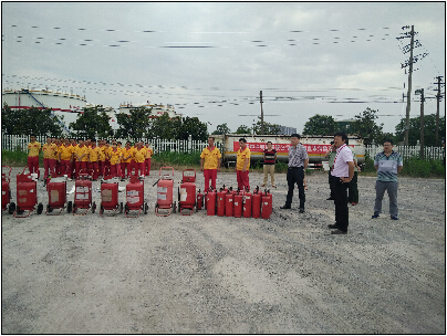 上午8:30演練準時開始,消防官兵對各種滅火器具的使用進行專業(yè)講解和操作演示。演練項目包括初起火災撲救、模擬發(fā)油臺提油車輛發(fā)油過程中著火撲救、庫區(qū)儲油大罐火災撲救,演練持續(xù)2個小時.整個演練過程指揮有力、分工明確、配合默契、實戰(zhàn)氛圍濃厚。期間,在總公司物流中心領導及油庫管理人員的陪同下,安監(jiān)局陳局長還實地察看了油庫的安全監(jiān)控系統(tǒng),詢問油庫安全生產工作各項措施的落實情況。